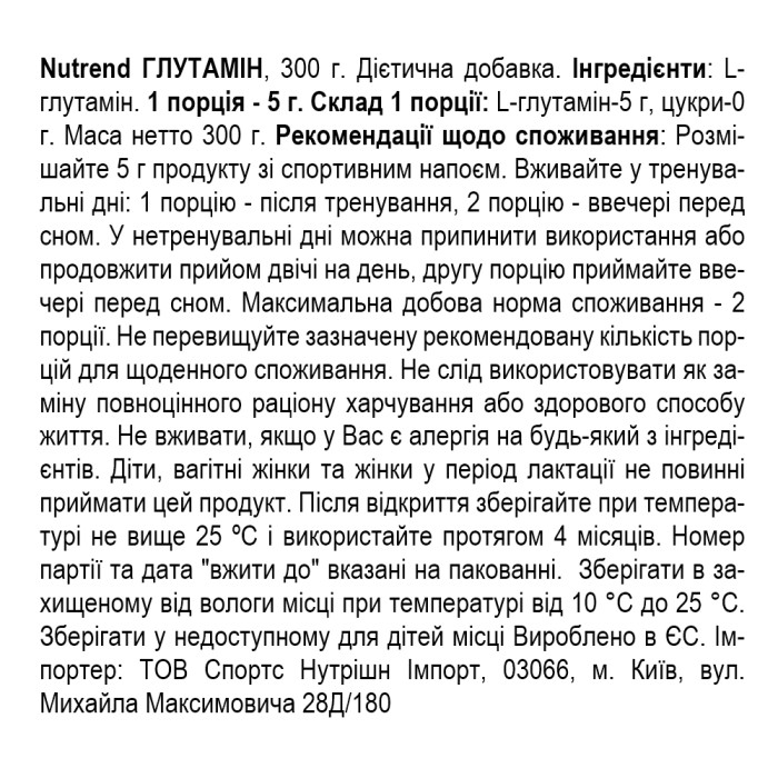 Завдяки глютаміну в мене покращилось травлення, імунітет міцніше і сплю вночі набагато краще. Тому рекомендую не тільки спортсменам.