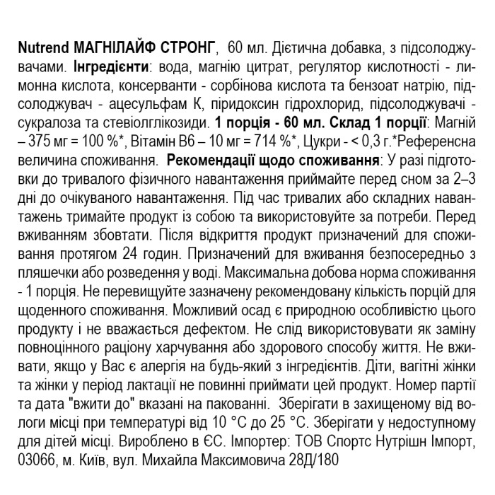 Nutrend MagnesLife Strong — це харчова добавка, до складу