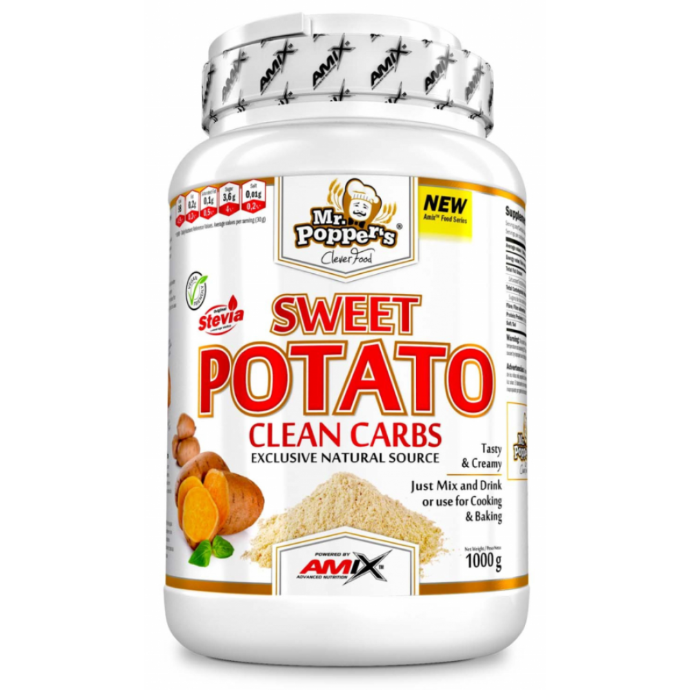 Amix Mr. Popper's Sweet Potato Clean Carbs - це високоякісний джерело вуглеводів, створений на основі порошку солодкої картоплі. Цей продукт ідеально підходить для тих, хто шукає здорову і ефективну підживлення енергією перед тренуванням, протягом дня або для відновлення після фізичних навантажень.