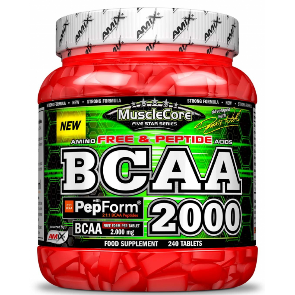 MuscleCore® BCAA with PepForm AMIX – це продукт, який містить BCAA у двох формах: вільній і пептидній. Пептиди виробляються за допомогою запатентованого процесу, в якому амінокислота з розгалуженим ланцюгом (BCAA) у вільній формі поєднується з пептидами, виділеними зі свіжої солодкої сироватки. Ця унікальна технологія забезпечує 50% вміст BCAA у співвідношенні лейцину, ізолейцину та валіну 2:1:1. Πептидна форма була отримана після процѽа фpаціонного роздiлення сивороти. Він значно полегшує синтез біла і запобігає антибіотелічним процесам.
