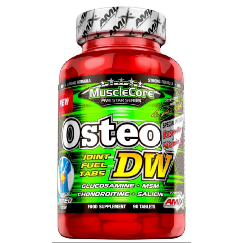 OsteoDW від Amix – це біологічно активна добавка, яка призначена для ефективного зміцнення суглобів та оптимального прискорення можливого процесу регенерації. Добавка є комбінацією глюкозаміну, хондроїтину, ЧСЧ, саліцину, вітаміну С та Boswellia Serrata (Boswellin®), спеціально підібраних для захисту та відновлення суглобів, пошкоджених важкою фізичною роботою.