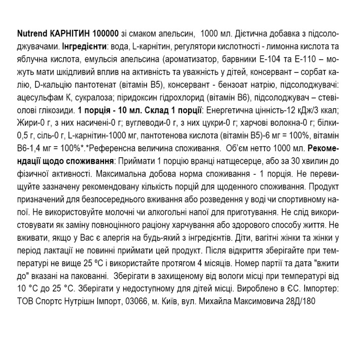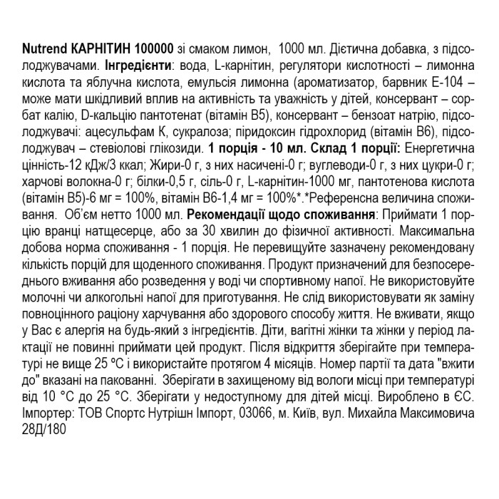 Nutrend Carnitine 100 000 - Це популярна спортивна добавка, розроблена для підтримки процесів спалювання жирів і підвищення енергетичного потенціалу організму. L-карнітин, основний компонент цього продукту, відіграє важливу роль у транспортуванні жирних кислот до мітохондрій клітин, де вони використовуються як паливо.