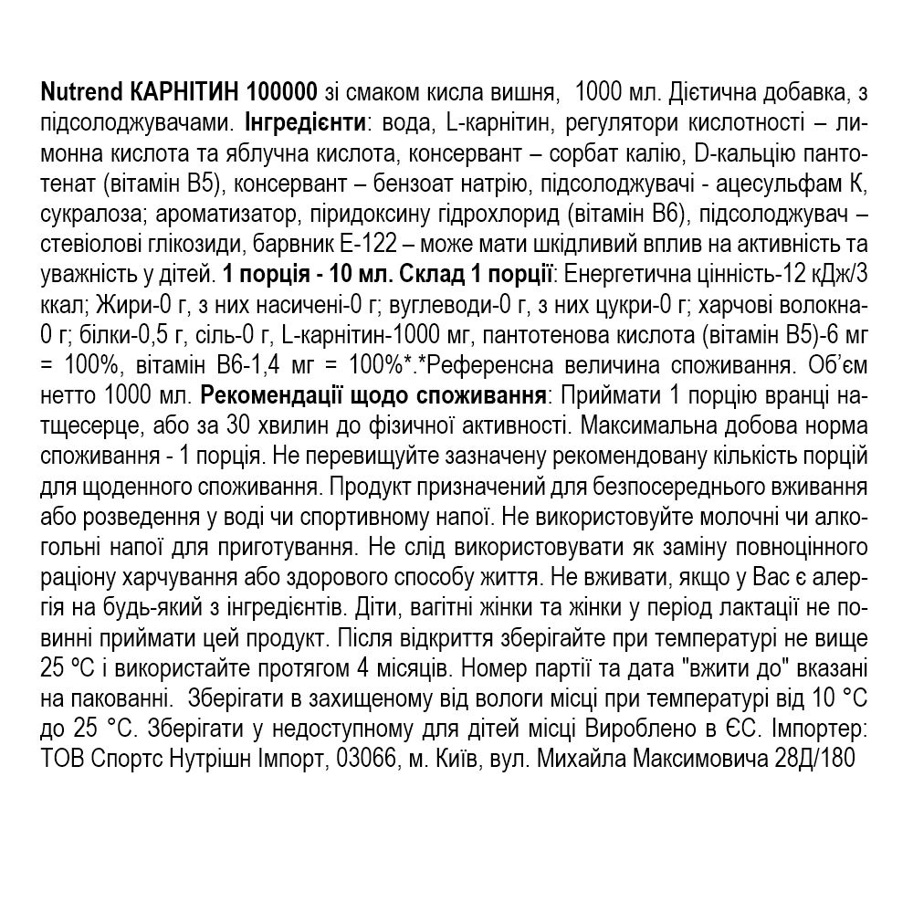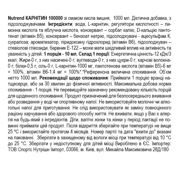 Чому варто вибрати Nutrend Carnitine 100 000?