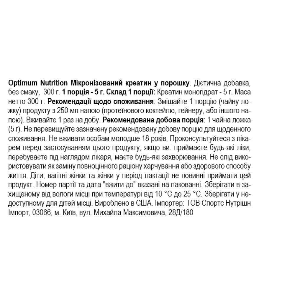 Склад Optimum Nutrition Creatine Powder