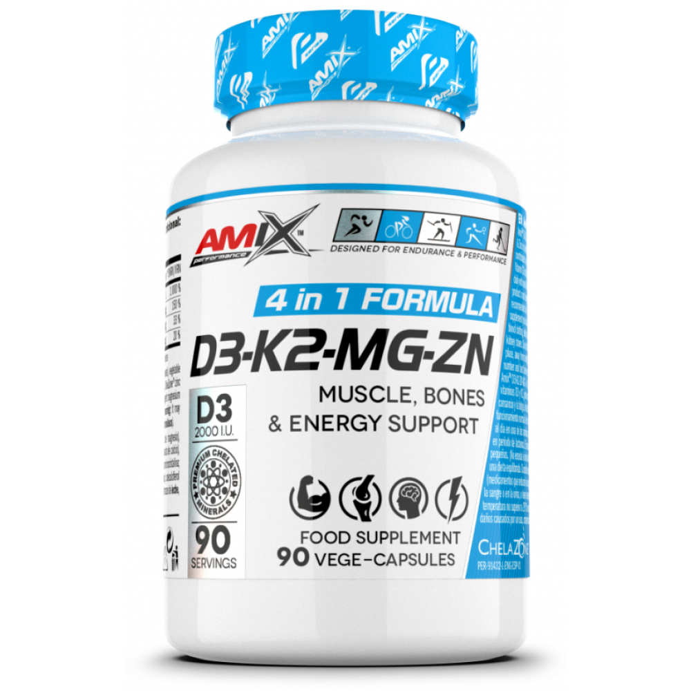 Amix Performance D3-K2-MG-ZN - це комплексна харчова добавка, що об'єднує в собі вітаміни D3 і K2, а також мінерали магній і цинк в хелатній формі. Ця синергічна комбінація розроблена для підтримки здорових кісток, м'язів, імунної системи та загального самопочуття.