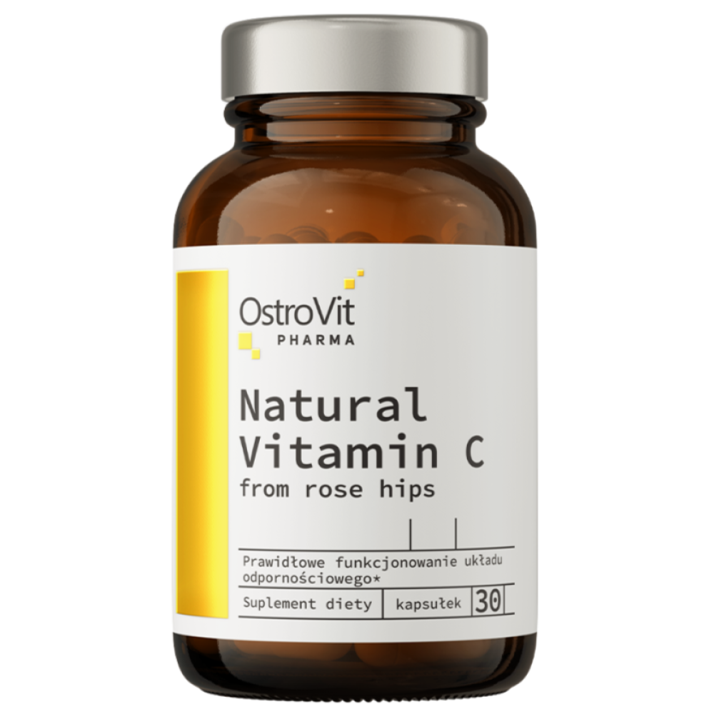Ostrovit Pharma Natural Vitamin C from rose hips - це харчова добавка, що містить натуральний вітамін C, отриманий з плодів шипшини. Вітамін C є потужним антиоксидантом, який відіграє важливу роль в імунній системі, виробництві колагену та інших функцій організму.