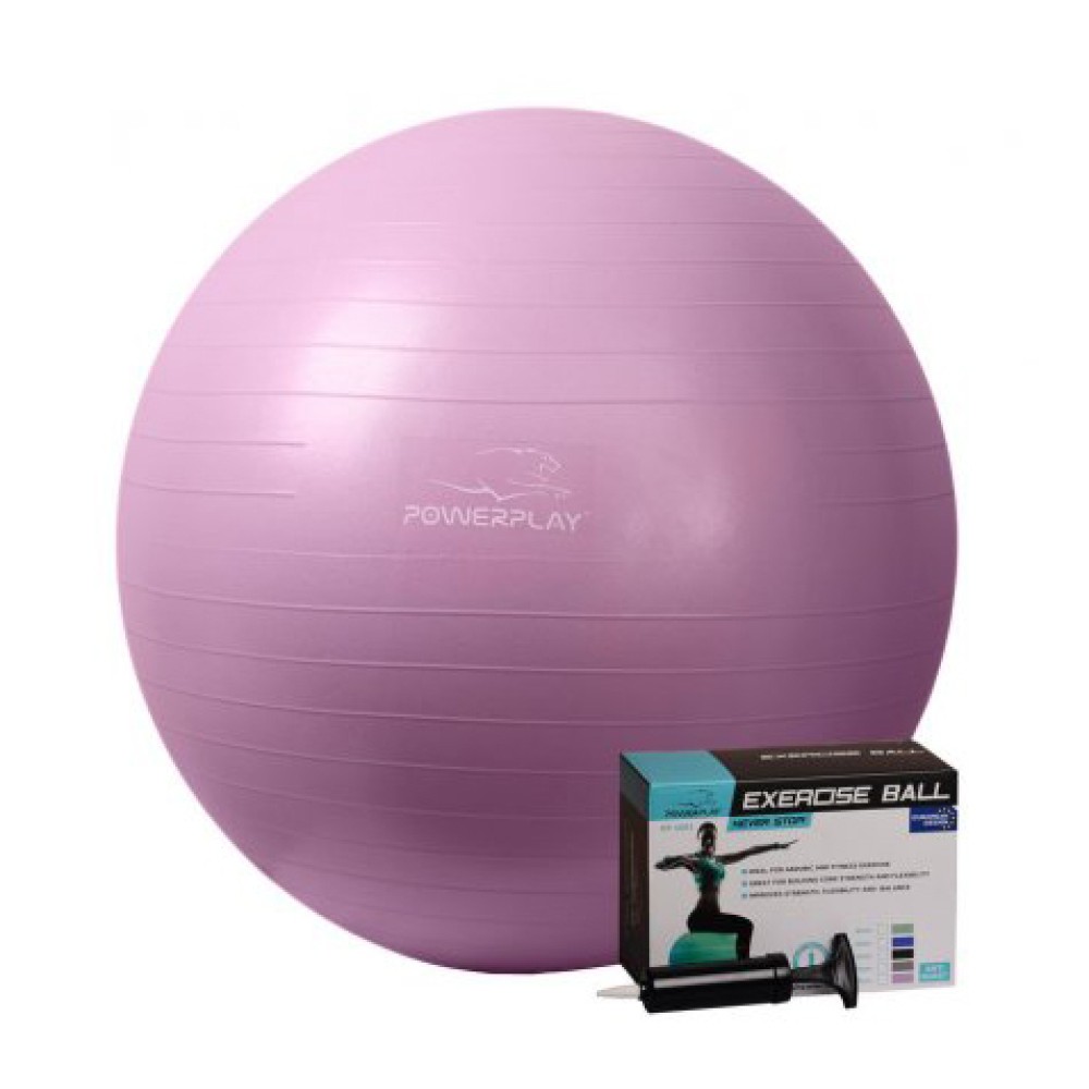 М'яч для фітнесу PowerPlay 4001 75 см + насос виготовлений із міцного PVC, має класичну гладку поверхню, легкий, стійкий до розривів (максимальне навантаження до 150 кг), при контакті зі шкірою не викликає алергії.