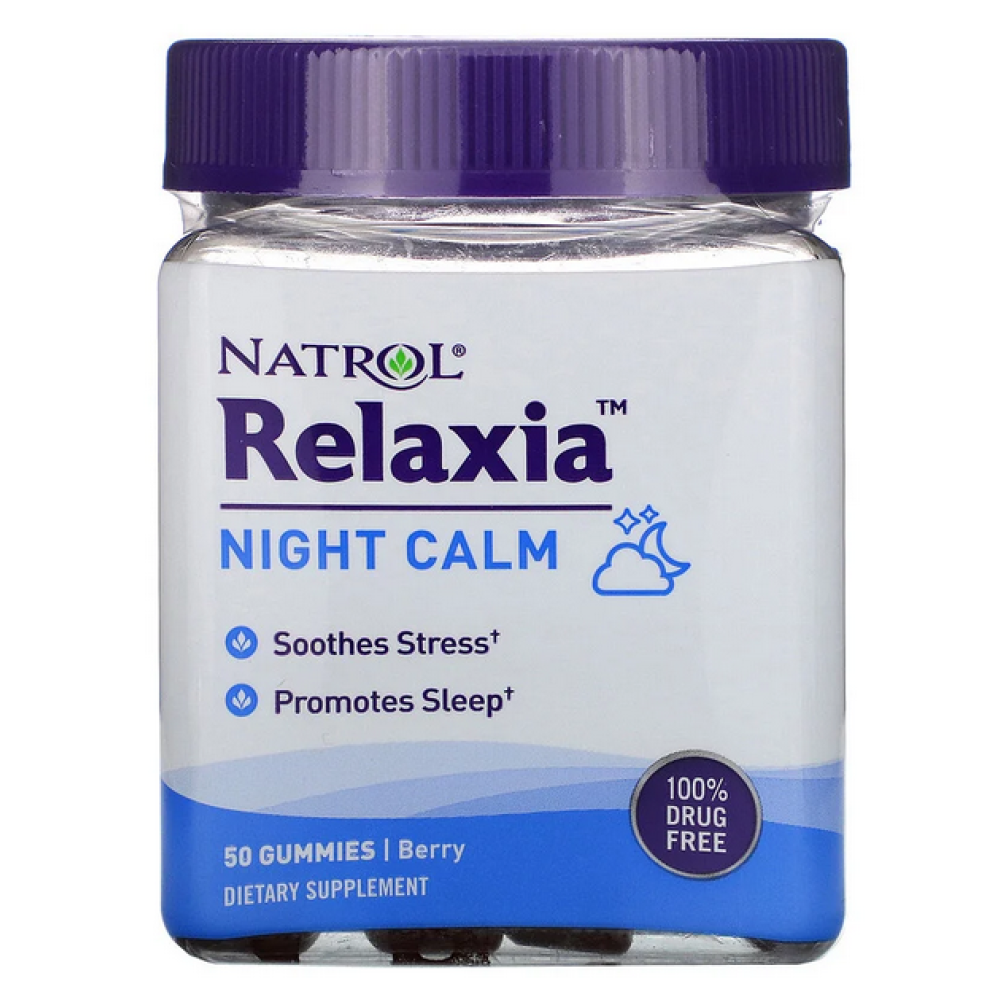 NATROL Night Calm - 50 марм харчова добавка, що полегшує засипання і не викликає звикання. Сприяє глибокому та тривалому сну. Добавка у вигляді жувальних цукерок із приємним кисло-солодким ягідним присмаком за рахунок тростинного цукру, органічного сиропу бузини та тапіоки без штучних барвників та ароматизаторів.