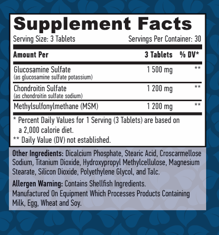 У кожній таблетці містяться глюкозамін, хондроїтин та MSM – три потужні компоненти, що підтримують здоров'я суглобів та зв'язок. Вони допомагають відновлювати хрящову тканину, зменшують запалення та покращують рухливість суглобів.