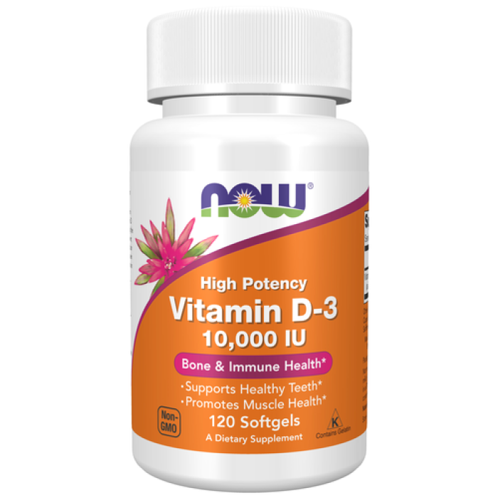 Vitamin D3 від NOW, цей продукт можна зарахувати до групи вітамін першої необхідності. Вітамін Д3 у незначній кількості надходить з їжею, а також синтезується організмом при попаданні променів сонця на шкіру. Основна функція Vitamin D3 10000 ME NOW Foods регулювання обміну фосфору і кальцію в організмі, при недостачі кальцію ваші кістки втрачають еластичність і стають менш міцними, що призводить до переломів при незначному навантаженні, так само можливі проблеми із зубною емаллю (зубами)