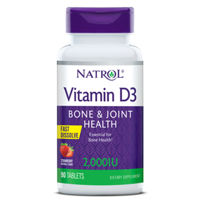NATROL Vitamin D3 2,000 IU полуниця - 90 таб з вітаміном D3 відіграє важливу роль в організмі людини. Він регулює обмін фосфору та кальцію, бере участь у формуванні кісткової тканини. Нестача вітаміну D3 в організмі призведе до недостатнього харчування клітин, крихкості кісток, підвищуючи ризик небезпеки переломів. Особливо брак його спостерігається у людей, які ведуть активний спосіб життя, спортсменів.