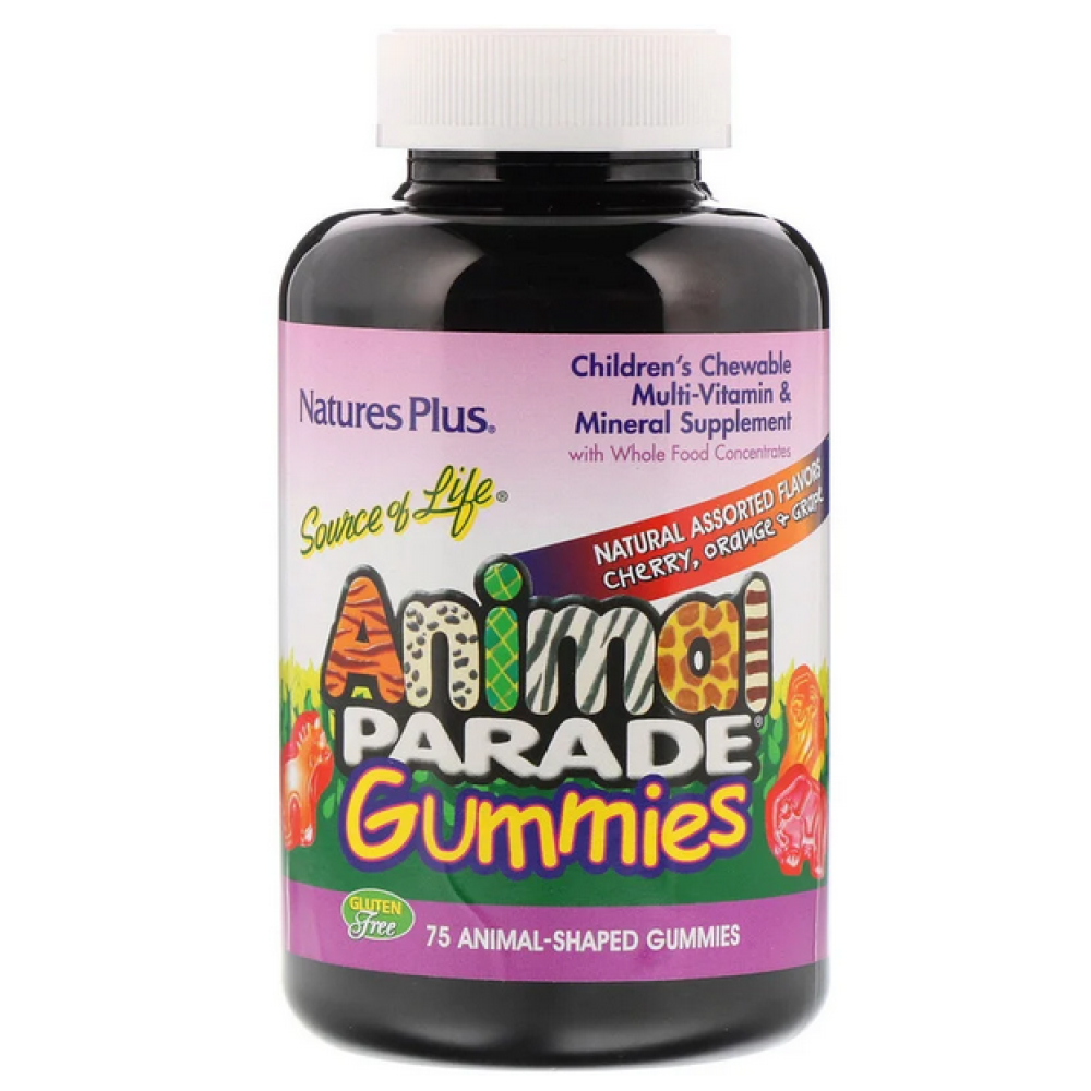 NATURE'S PLUS ВІТАМІНИ ДЛЯ ДІТЕЙ ANIMAL PARADE - 75 МАРМ - АССОРТІ - це желейні жувальні цукерки у формі різних тварин з вітамінами та мінералами в ідеальній пропорції денної норми для дітей від 4 років. Цукерки в асортименті з різними натуральними смаками.