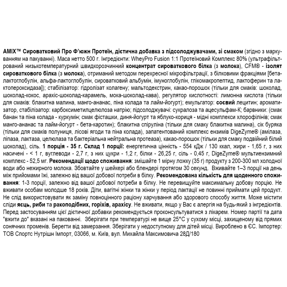 Склад Amix Whey-Pro FUSION