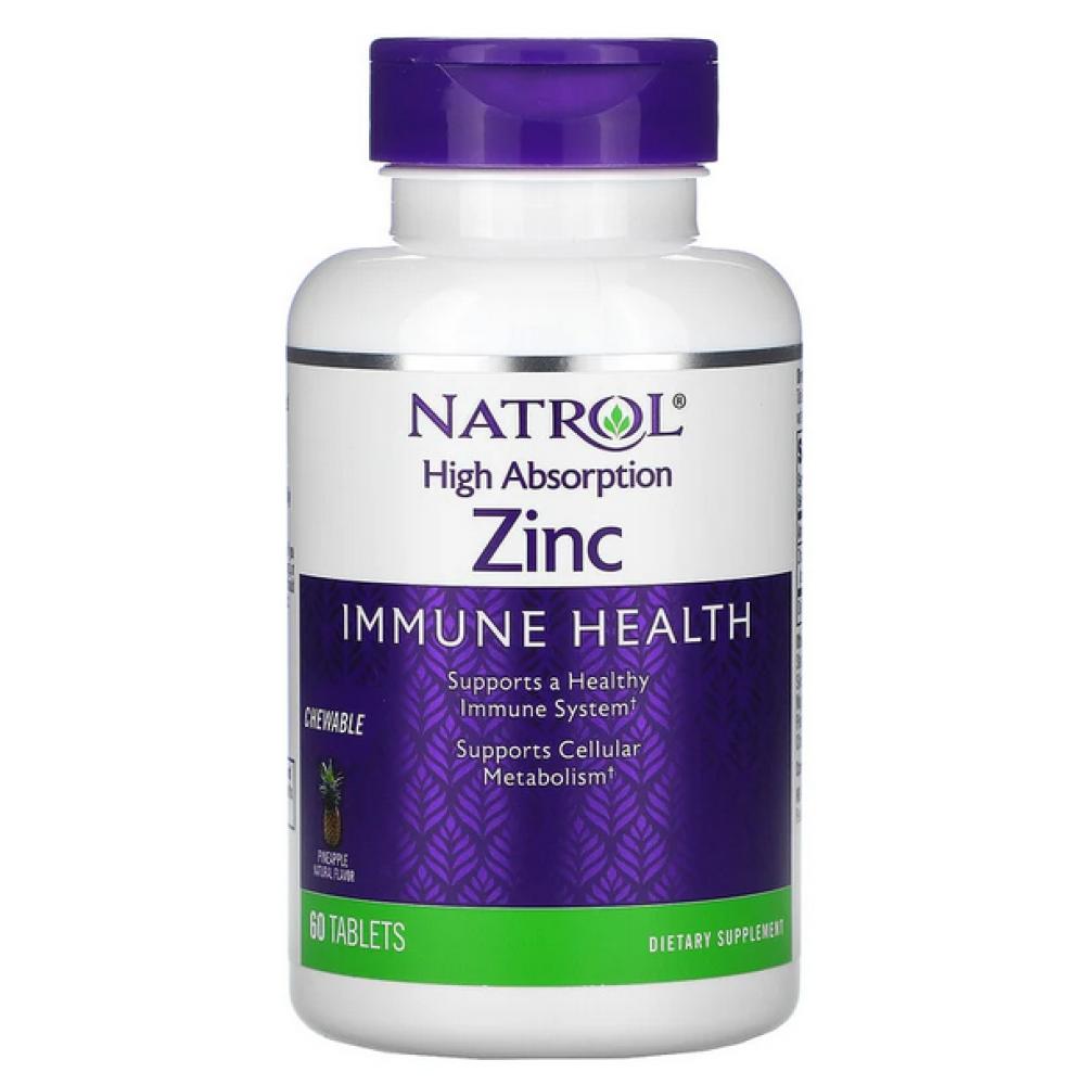 NATROL High Absorption Zinc - 60 таб - це жувальні таблетки цинку швидкого засвоєння зі смаком ананасу. Основне призначення цього препарату - імуностимуляція, поліпшення метаболізму та підвищення активності.