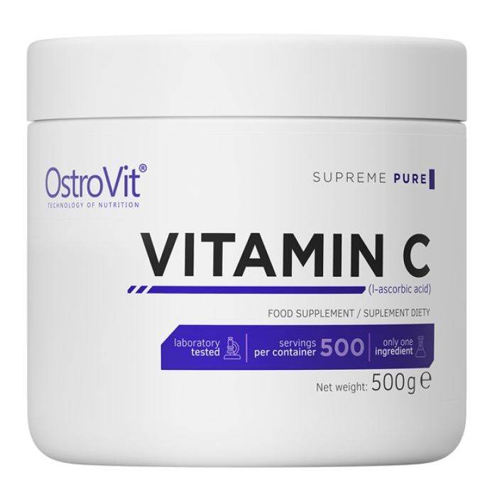 OSTROVIT Vitamin C 500 g Витамин C это один из самых важных Витаминов в организме человека, особенно людям ведущим активный образ жизни спортсменам . В период плохой эпидимиологической ситуации,связанной с респиратурными заболеваниями. Содержит 500 порций в банке(одна порция содержит 1000 мг витамина С (аскорбиновой кислоты)