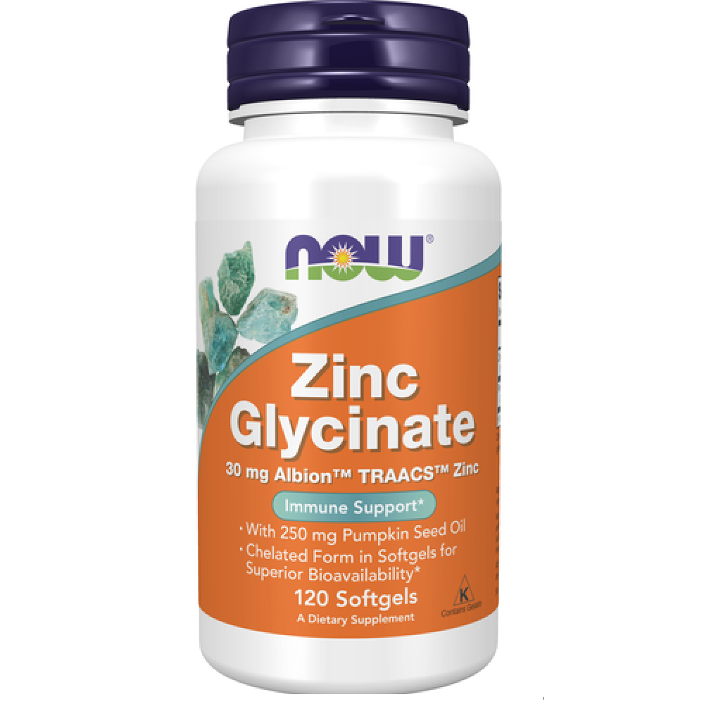 NOW FOODS ZINC GLYCINATE-30mg 120 мягких гелевых капсул-пищевая добавка глицината цинка обогащенная маслом семян тыквы. Цинк необходим для нормальной работы всего организма в особенности метаболизма белка, углеводов, синтеза ДНК. Цинк участвует в сотни химических процессах в организме и без достаточного его количества невозможно быть здоровым и сильным.